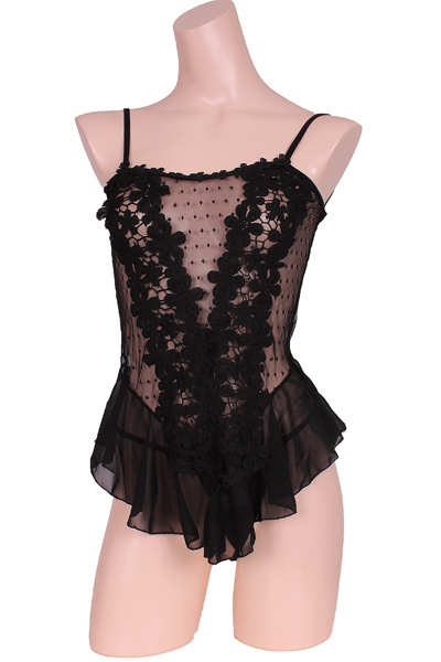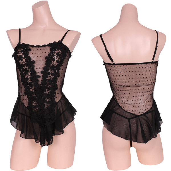 HOME> 下着 > ベビードール・スリップ > フリルとレースで可愛さ増しベビードール&Tバックセット ブラック フリルとレースで可愛さ増しベビードール&Tバックセット ブラック