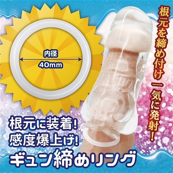 仕様:非貫通型 パッケージ:16.0×10.0×6.0cm 本体:11.5×5.0×5.0cm・リング直径5.0cm・内径4.0cm 重量:140gとろけるゼリーのようなホールと、ギュッと締めるリングの快感満点セット!とろけるやわもちホールと感度爆上げのギュン締めリング、さらにたっぷり楽しめるローションが付属。●もこもこきつリング |
