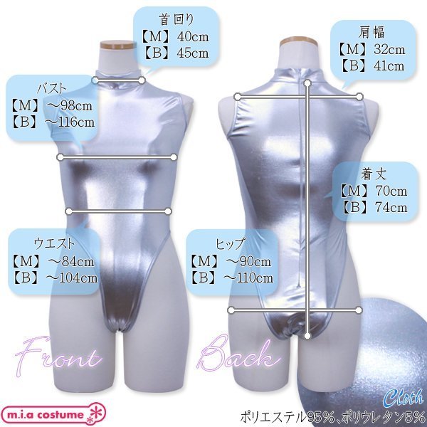仕様:Mサイズ:B〜98cm・W〜84cm・H〜90cm・肩幅32cm・首周り40cm・着丈70cm セット内容:レオタード単品(後ろファスナー) 素材:ポリエステル95%、ポリウレタン5%エナメルのような光沢が眩しい!ギリギリのハイレグに彼の視線は集中♪身体のラインが綺麗に出る素材なので、光沢感と相まってとても着映えします。コスプレ撮影会や余興イベント、催事などにも活躍しそう♪体にぴったりとフィットするのでエアロビクスなどにもおすすめです。※低温水洗い可、塩素系漂白剤による漂白不可、アイロン不可、ドライクリーニング不可、色落ちの可能性があります。※こちらの商品は在庫の状況によりお届けまでに4日〜7日程度かかる場合がございます。 |