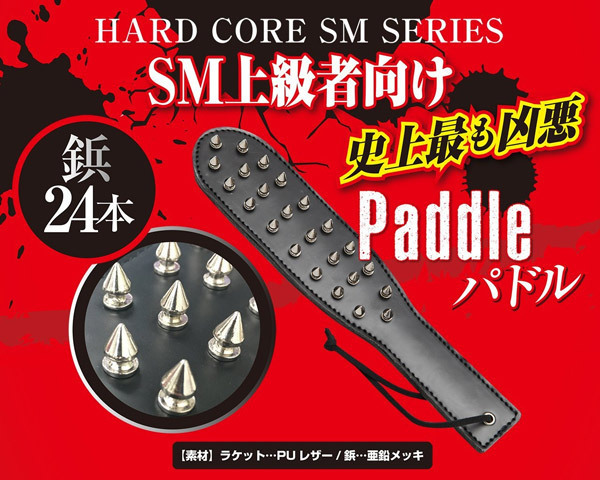 究極のお仕置きプレイに♪SM上級者向けの鋲付きスパンキンググッズ「鋲付きスパンキング パドル」。24本の鋲を備えたハードなパドルでフルスイング!鋲は片面のみなので、裏側の平らな面でスタンダードな調教プレイも可能です。【素材】パドル:PUレザー/鋲:亜鉛メッキ。
