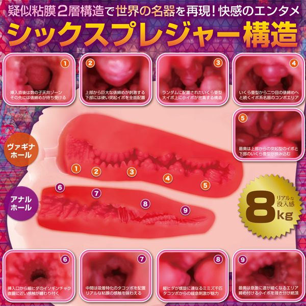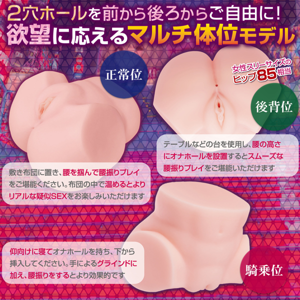 仕様:非貫通型 パッケージ:34.5×37.0×26.0cm 本体:28.0×30.0×23.0cm 重量:8.0kg成人女性のまんま実物大サイズの臨場感溢れるリアルなフォルム!世界の名器を完全網羅したシックスプレジャー構造の大型非貫通オナホールです。大きさは「成人女性の実物大サイズ」でスリーサイズの「ヒップ85cm相当」のリアルボリューム。臭い控えめサラサラ触感の「人肌素材」を使用していますので、股間やヒップに顔をうずめる〜などのフェチプレイもお楽しみいただけます。 |